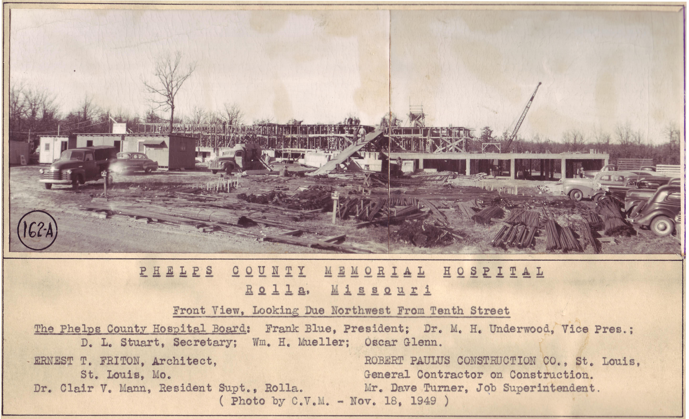 Rolla, Missouri, has long served as a regional medical hub. From a Civil War field hospital in the Old Phelps County Courthouse to a makeshift facility in the former Hotel Baltimore, area residents have repeatedly stepped in to care for one another when resources were limited. When the Nelle McFarland Hospital closed in 1946, it underscored the dire need for a modern public hospital. The response was swift and unified: Phelps County voters overwhelmingly passed a bond issue to fund construction, and Dr. E. A. Scott of St. James closed his 10-bed hospital so the new facility could qualify for a federal grant. Our community raised $40,000 to equip patient rooms, with additional donations from local organizations and citizens.